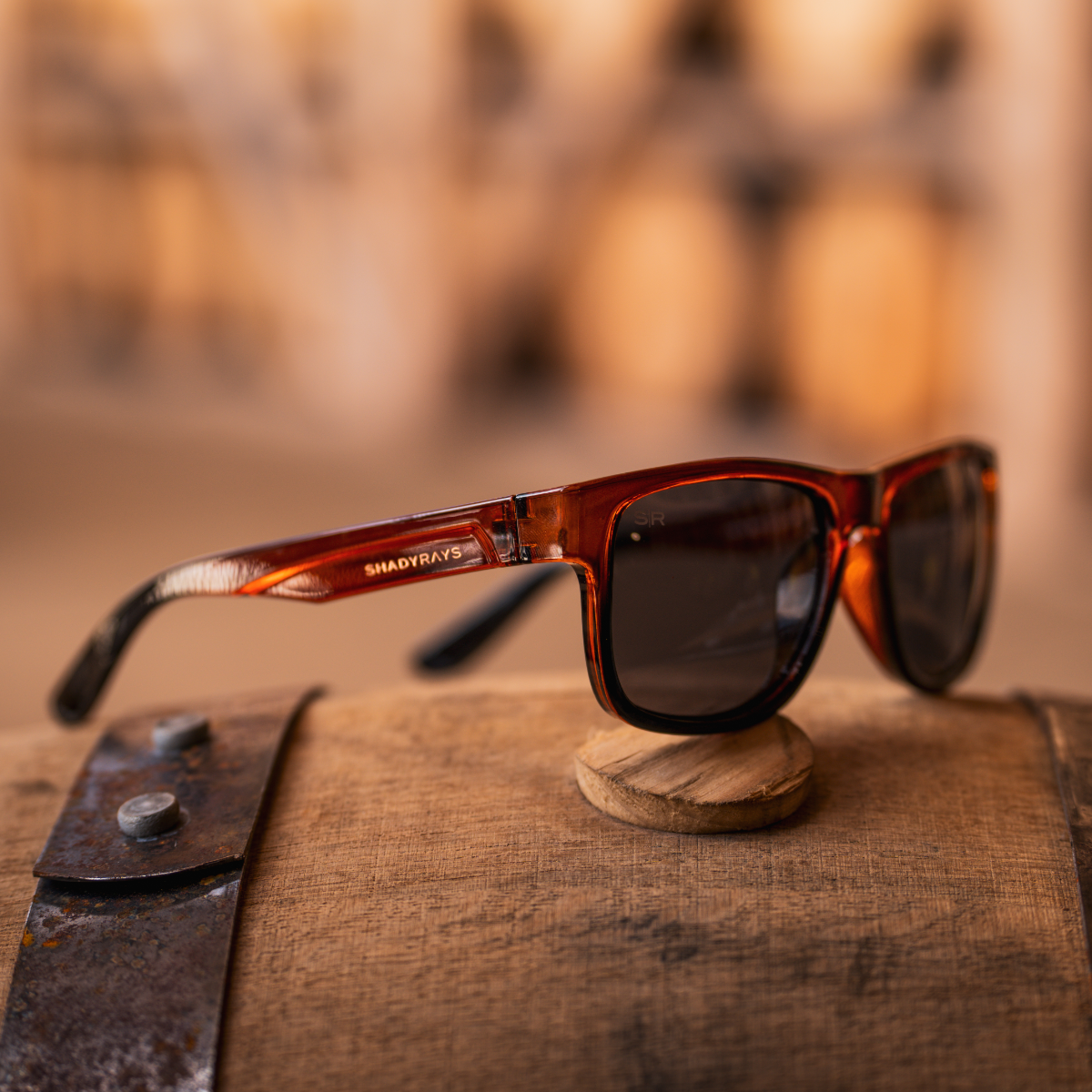 Stylish and versatile. this lightweight frame features rich amber tones with copper accents and a charred barrel design for all-day comfort.