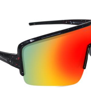 - Durable matte black frame with red. white. and blue splatter paint unique to each pair