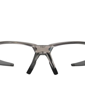 Translucent grey smoke TR-90 sport frame with raised logos. complete with prescription lenses custom-made for you in our US-based optical lab. Includes signature hard case.